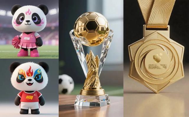 “川超”吉祥物、奖杯、奖牌 图据成都发布